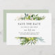This elegant olive greenery wedding horizontal save the date is perfect for your modern summer boho wedding. It is designed with watercolor emerald green and sage-coloured leaves, touches of botanical gold, blush pink olive flowers, and simple black vintage typography. All these elements combine for a beautiful bohemian feel.