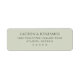 This label features a simple, elegant design with centered text on a muted olive green background. The typography is clean and sophisticated, using a serif font that adds a touch of formality, perfect for formal occasions like weddings or invitations. The layout is minimalistic, focusing entirely on the textual elements without any additional graphics, creating a balanced and uncluttered appearance. The subtle contrast between the background and the slightly darker gray text ensures readability while maintaining a cohesive look, ideal for conveying important information in a refined manner.