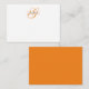 The monogram note card features a refined and minimalist design. It showcases a large, elegant cursive initial in orange, paired with a bold, uppercase name in black text, placed centrally across the initial.