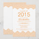 Formal graduation party invitation featuring a modern orange chevron top and bottom border set on a crisp white background. Flip our stylish invitation over to find a matching back for an extra special touch. Can also be used for a graduation announcement. Easy to personalise with your class of 2015 grad party information. Available in our shop in a variety of popular high school and college school colours.