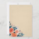 This wedding invitation design features watercolor orange flowers and blue foliage on a beautiful cream background.
