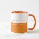An elegant and modern orange mug, with two lines of text...