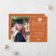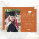 Elegant Orange White Script Cap Photo Graduation Announcement