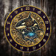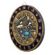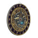 Add a touch of sophistication to your man cave or fishing lodge with this stunning artwork. The centerpiece features a graceful orca alongside a vivid blue sea turtle, surrounded by intricate golden floral designs and glowing stars. This circular masterpiece is perfect for a dartboard, creating a unique and eye-catching focal point.