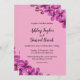 This elegant floral wedding invitation is perfect for a modern summer wedding. The simple design features beautiful purple orchid flowers and an elegant black calligraphy script on a blush pink background.