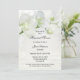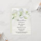 Elegant memorial or funeral service invitation featuring a light design with white orchids over a faint image of a water surface.