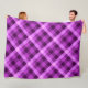 A large sized fleece blanket featuring a pretty, orchid purple plaid pattern design.