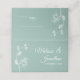 The front features a beautiful and delicate white orchids line drawing design, with the customisable bride and groom's names and wedding date over a mint green background. The back features the same elegant orchids design with two lines to write your guest's name and table number (by hand).
