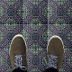 Unique decorative ceramic tile design featuring lacy ornaments in cream, purple and violet shades.