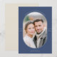 This refined Hanukkah design features an elegant oval photo window framed by clean, modern lines for a beautifully polished look. A soft arch of text at the top delivers warm Hanukkah wishes, while the year is displayed on each side for a balanced, contemporary touch. The deep blue background sets a classic holiday tone, making any photo stand out with sophistication. Customizable text along the bottom allows you to add your family name or personal greeting, creating a timeless way to share Hanukkah happiness with friends and loved ones.