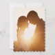 The design includes an elegant photo overlay on the front, allowing customisation with a meaningful photo of the couple. This "overlay photo wedding" element adds a personal and heartfelt dimension, turning the card into a cherished keepsake for guests.