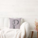Elegant P Boho Floral Monogram Initial Lilac Grey Cushion