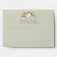 Elegant pale green envelope with beautiful surprise inside with delicate watercolor palm leaves, foliage and flowers in green, olive, beige, white, peach, orange, terracotta and lilac lavender hues, pair with soft green watercolor stain cascading inside. Top back flap custom text section with decorative foliage and floral detail that can be use for your return address details or any other message you like (i.e. "THE WEDDING OF ...") Part of our "Palm Leaves Tropical Floral Green Collection" with a variety of coordinating products including address labels.