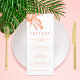 Elevate your reception with this Elegant Palm Tree Tropical Wedding Menu, featuring a soft "Peach Fuzz" orange palm tree and sophisticated typography that lends a boho vibe. Blending island charm with modern bohemian elegance, this menu beautifully showcases your wedding cuisine, adding a refined touch to your tablescape. Perfect for beach weddings, tropical receptions, and coastal celebrations, it’s printed on premium paper with customisable details to match your special day. A stylish way to enhance your seaside dinner, island feast, or sunset soirée.