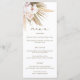 Elegant boho wedding menus in earth tone colours featuring a watercolor arrangement of dried pampas grass and flowers with the heading "menu" in modern calligraphy font. Customise with your menu details. Click "customise further" to adjust layout.