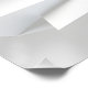 A photorealistic, abstract 3D composition featuring an intricately folded and layered white paper structure. The design showcases a complex yet refined architectural form, with precise folds and layers that create a visually striking geometric silhouette. Dramatic studio lighting from one side casts deep, sharp shadows, emphasizing the depth, angles, and textured surfaces of the paper, highlighting the craftsmanship and dimensionality. The background is a seamless, neutral off-white, providing a sleek and minimalistic setting that enhances the modern and sophisticated esthetic. This image exudes elegance and clarity, making it an ideal clean background for contemporary design, art, or branding projects that require a refined, geometric visual statement.
