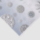 Elegant tissue paper design featuring stylised snowflakes on silver background.