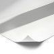 A photorealistic, abstract 3D composition showcasing an intricately folded and layered white paper structure. The design features a sleek, complex architectural form achieved through precise folding techniques, resulting in a refined geometric silhouette. Dramatic studio lighting from one side casts deep, sharp shadows that accentuate the shape, depth, and textured surface of the paper, emphasizing its craftsmanship and dimensionality. The background is a seamless, neutral off-white, providing a minimalist setting that highlights the clean, sophisticated esthetic. This image is ideal as a modern, elegant background or visual centerpiece, embodying clarity, structure, and refined artistry.