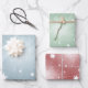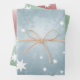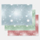 Lovely pastel fantasy star pattern Christmas wrapping paper sheets in blue, red and green.
