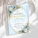 Elegant Pastel Blue Gold Eucalyptus Quinceañera Invitation