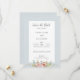 This romantic and elegant design features soft pastel roses and wildflowers in shades of blush pink, white, pale violet and gold on a light mint green background with white centre element. This lovely design also includes flowing text graphics in a custom calligraphy font and optional photo template on the back. The background colour is also customisable.