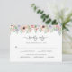 This party RSVP card features an elegant watercolor graphic of burgundy colored flowers and green leaves on a white background. The backside offers a light green background.