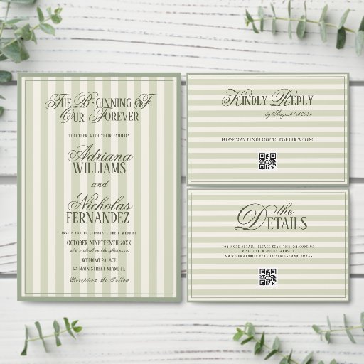 Elegant Pastel Green Striped Wedding Invitation