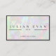 Elegant sparkly faux holographic background business card for both small business owners and large organisations. The design features a modern and minimalistic typography with simple but effective background. Perfect for a beautician or beauty salon owner, makeup artist, costume maker, hair stylist, or cosmetologist. NOTE: The holographic details are simulated in the artwork. There will be no actual holographic shine effects when printed.