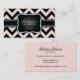 Beautiful pastel pink and black chevron zig zag pattern with a teal blue and black ribbon. Salon and Spa business cards.