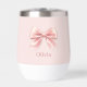 Sip your favourite wine in style with this elegant pastel pink thermal wine tumbler, featuring a delicate bow design and your custom name. Perfect for keeping your drink at the ideal temperature, this tumbler is double-walled and vacuum-insulated, ensuring your wine stays cool for hours. Whether you're enjoying a glass at home or gifting it to someone special, this chic wine tumbler is an ideal choice for any occasion. Its feminine design and personalised touch make it a thoughtful gift for birthdays, holidays, or celebrations.