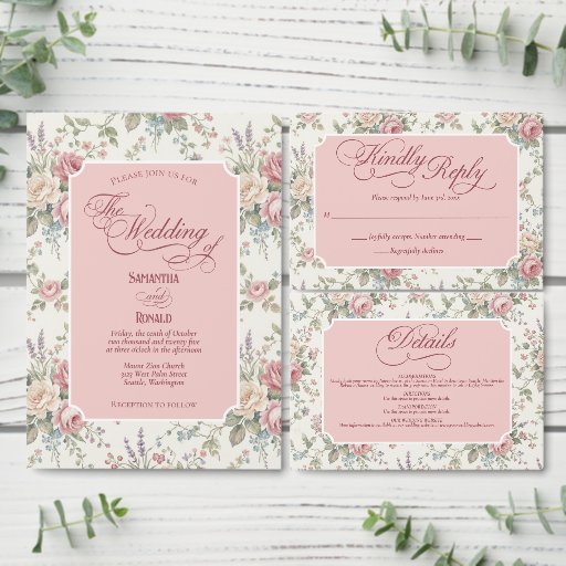 Elegant Pastel Roses Shabby Chic Wedding Invitation Belly Band