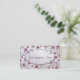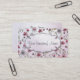 Beautiful business card design with a delicate flower pattern with pink flowers on a light pink background.