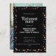 Elegant and modern nurse retirement photo invitation with a pattern of medical instruments over a black background. Illustrated and designed by Patricia Alvarez.