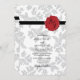 This design features elegant vintage leaf pattern and personalised wax seal image. The damask grey leaf patterned background contrasts against the black ribbon and red wax seal. The combination of grey, red, black and white colours create a sophisticated, trendy and chic style. Elegant wedding invitation design with modern elements. The simple setup of the typography gives it a distinct style. Matching wedding stationery items and other wedding invite formats are also available.