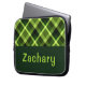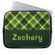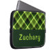 Elegant Pea Green Plaid Monogram Laptop Sleeve