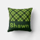 Elegant Pea Green Plaid Monogram Throw Pillow