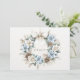 Elegant PEACE Blue Floral Pinecones Winter Wreath Holiday Card