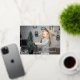 Classic foil holiday card featuring your horizontal photo with "Peace on Earth" displayed in elegant gold foil script. Personalise the front of the card with your family name. The card reverses to a modern red and white trellis pattern.