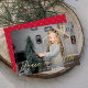 Elegant Peace on Earth Script Red Photo Foil Holiday Card