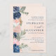 Elegant Peach and Blue Flower Formal Wedding Invitation