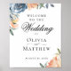 Elegant Peach Blue Botanical Wedding Welcome Poster