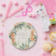 Beautiful and elegant peach and cream watercolor floral and greenery botanical watercolor wedding reception paper plate on a cream/white background. Personalise with the name of the bride and groom or any other text you choose. Contact me for assistance with your customisations or to request additional matching or coordinating products for your event(s).