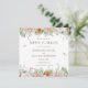 This square shaped save the date invitation design features beautiful peach and white flowers with greenery and white ribbons, on top of some rose-gold accents. The rose petal confetti adds an additional final special touch.