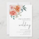 Elegant Peach Florals QR Code Wedding. Elegant florals , flow down from the top left. Wedding is in a set handwriting style script. Easily personalise the rest of the text to your own details. Add your QR code to your wedding website on the back makes this a convenient option for your guests to RSVP and see all the details without the need for separate RSVP and details cards. Your QR code will be automatically generated to update the sample code in the design, when you simply change the sample URL in the template with your own wedding website URL.