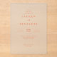 This wedding invitation features a minimalist and elegant design with a soft peach colour palette, creating a warm and inviting atmosphere. The layout is vertically orientated with centred alignment, utilising ample negative space to highlight the text. A mix of serif fonts adds a classic touch, while the cursive "and" between the names introduces a sophisticated flair. Perfect for formal weddings, this design emphasizes simplicity and refinement through its clean lines and straightforward typographic hierarchy, making it ideal for couples seeking an understated yet stylish invitation.
