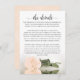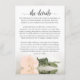This beautiful wedding enclosure card is designed to give you extra space for whatever information your guests may need, including website, registry, reception, travel, accommodations, or any other details. The card features a gorgeous design with a single reflecting ivory peach coloured rose and a lacy script calligraphy title reading "the details." The back is a marbled pale orange colour.