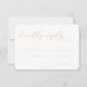 This wedding RSVP card features a minimalist design with ample negative space, creating an elegant and clean aesthetic. The soft peach colour palette enhances the inviting tone, while the combination of flowing script and modest sans-serif fonts balances sophistication with readability. Customisable fields allow for personalisation, making it perfect for formal communication needs. The overall mood is polite and courteous, ideal for capturing responses in a stylish yet straightforward manner.