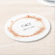 Elegant Peach Sparkle Wedding Script Calligraphy Round Paper Coaster