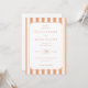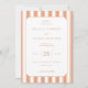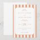 This elegant wedding invitation features a classic design with vertical peach and white striped borders framing a cream-coloured central panel. The layout is clean and sophisticated, utilising a mix of bold serif fonts for the names and date, complemented by delicate cursive script for added charm. The warm colour palette and refined typography create an inviting atmosphere, perfect for celebrating a special union. Customisable elements allow personalisation for names, dates, and location, making it ideal for couples seeking a timeless and formal look for their big day.