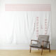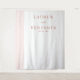 This wedding backdrop features a minimalist and modern design with a soft peach colour palette, creating a warm and inviting atmosphere. The layout includes vertical pink and peach stripes on the left side, adding subtle texture to the light cream background. Central text is elegantly arranged in a classic serif font for the names, with a cursive script for "and," emphasizing sophistication and personalisation. Perfect for formal occasions, this backdrop exudes understated elegance and refinement, making it ideal for capturing memorable moments.
